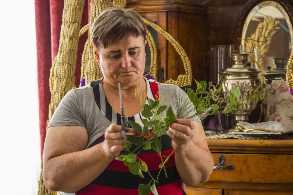 Ketvirtus metus Krekenavos bazilikai floristines kompozicijas pinanti I. Rudienė prasitaria, kad sunkiausia viso darbo dalis ir buvo išgauti tinkamą karūnų formą.