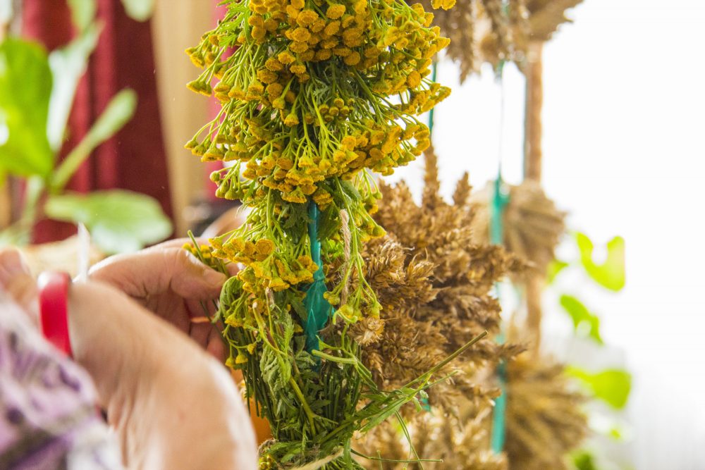 Dėl to prieš Žolinę klebonas – dažnas svečias krekenaviškės Irmos Rudienės sodyboje. Pastarąsias savaites čia netrūksta šurmulio, klegesio ir glėbių žolynų, kokių tik įmanoma surinkti Krekenavos apylinkių laukuose.