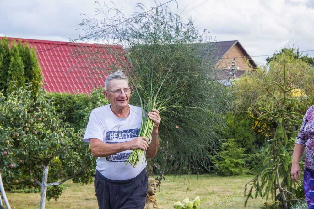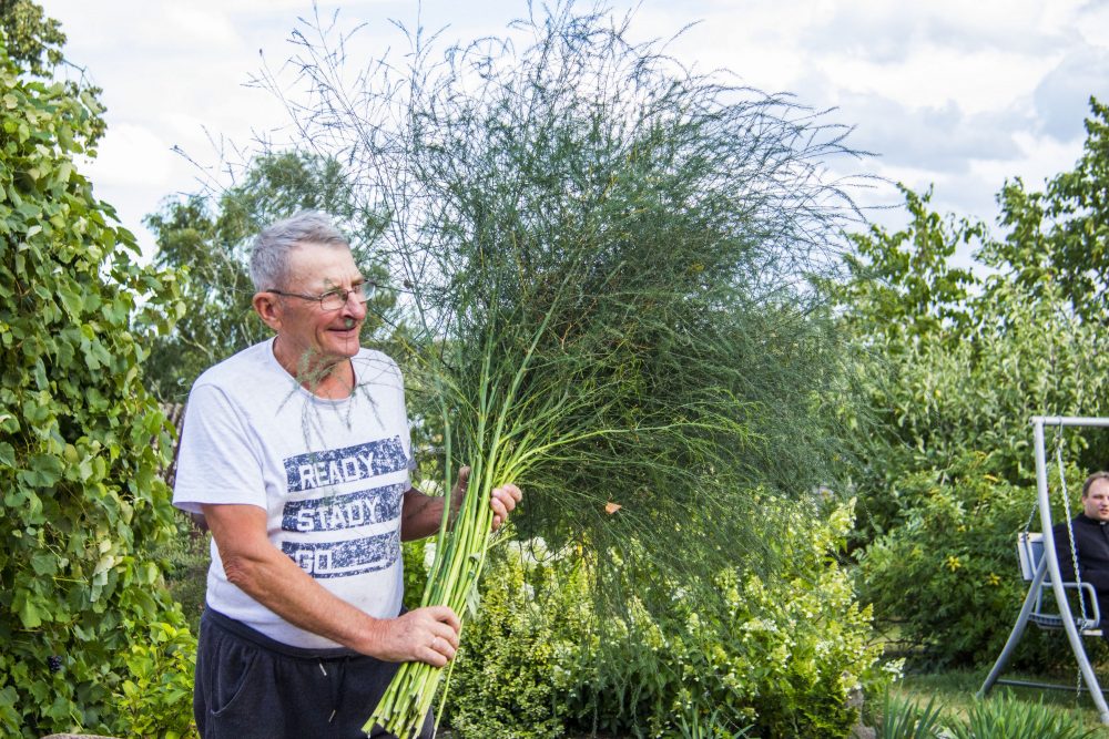 „Jei tik būčiau žinojęs, kad čia tie valgomi šparagai“, – pokštauja dvasininkas.
