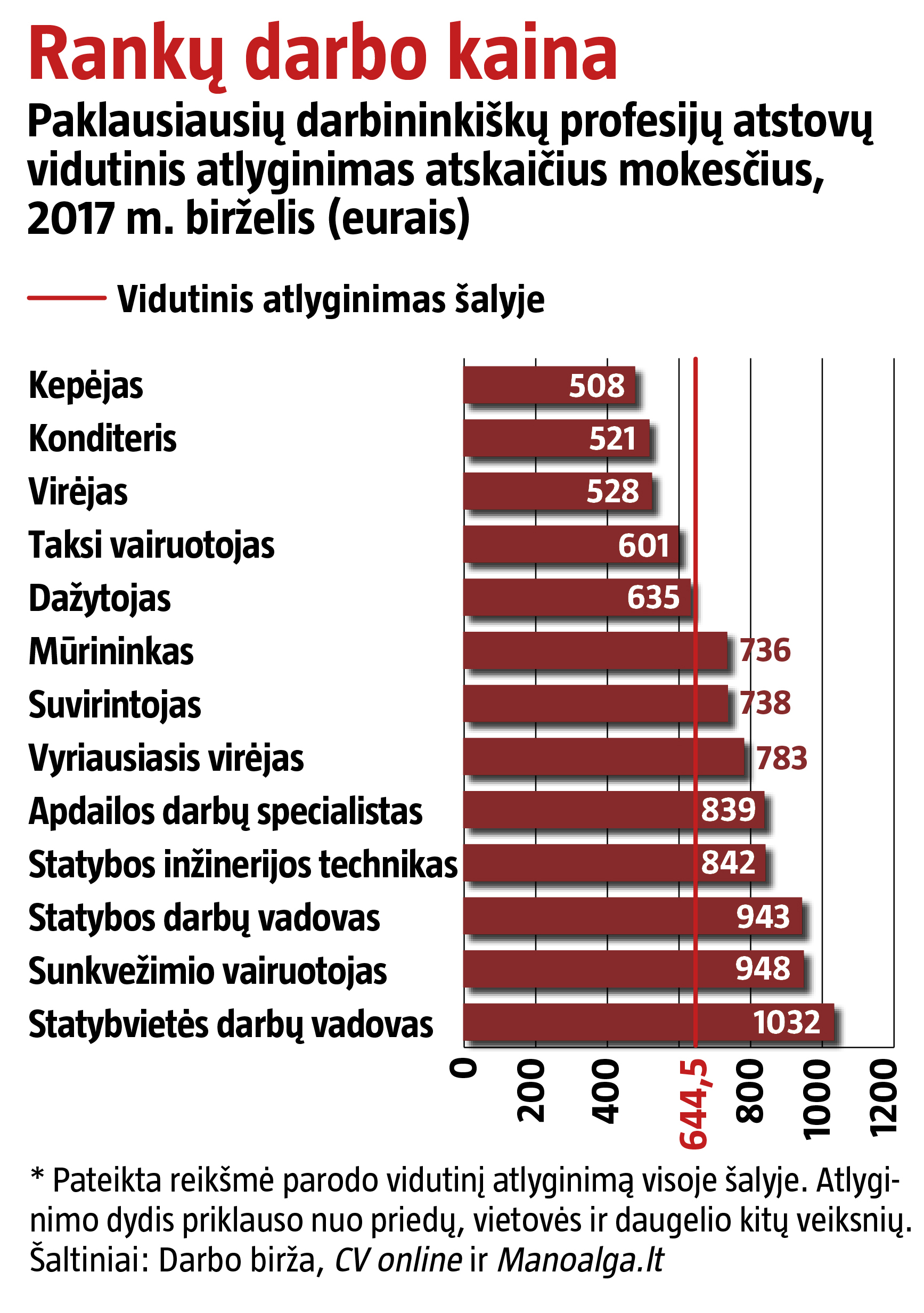 Be to, gerai savo amatą įvaldžiusiems žmonėms jaudintis dėl mažos algos tenka kur kas rečiau. Nors vadovų ir IT specialistų uždarbis neretai siekia tūkstančius eurų, jie susiduria su didžiule konkurencija, o profesionalūs kai kurių sričių darbininkai irgi gali gauti atlyginimą, gerokai viršijantį šalies vidurkį (žr. grafiką).