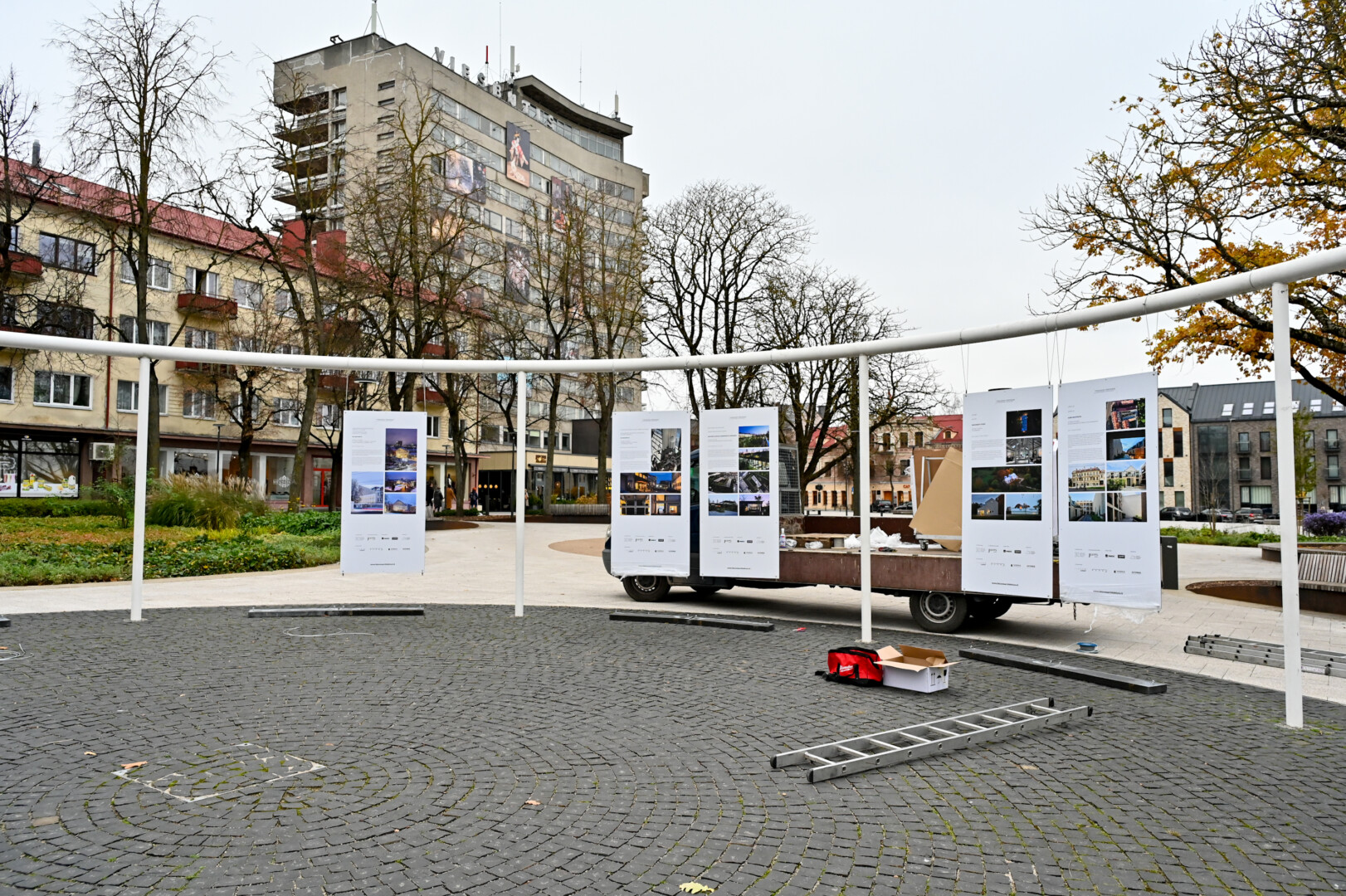 Panevėžio širdyje, Laisvės aikštės rotondoje, praeivių dėmesį traukia įdomiausių, geriausių šalies architektūrinių projektų paroda po atviru dangumi.