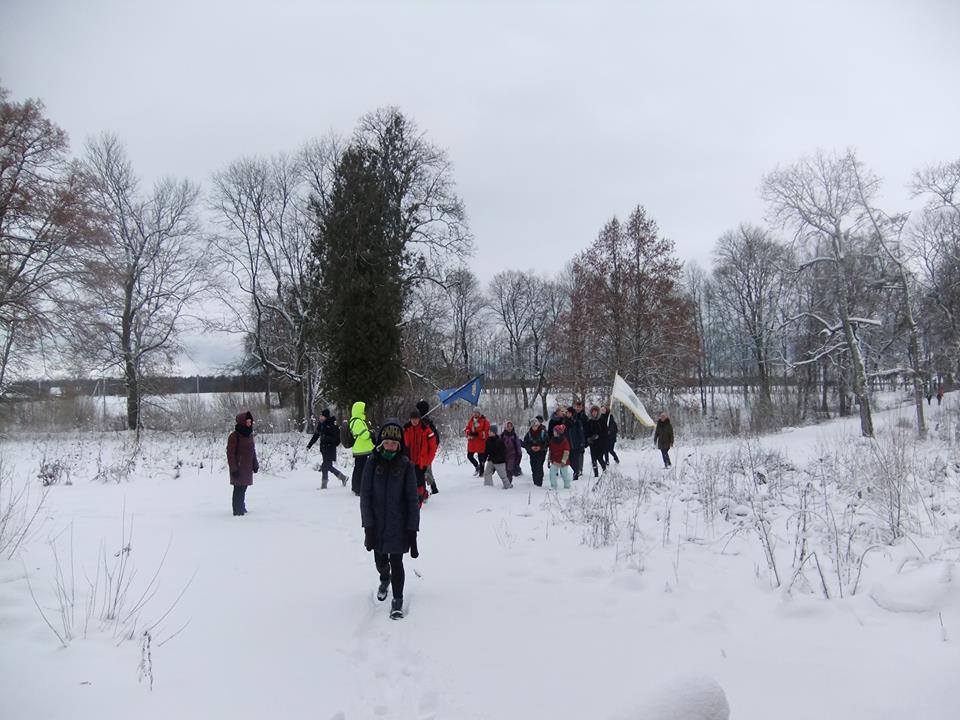 taip buvo nelengva saltas vejas,snigo,klampojom siek tiek per laukus, bet buvo smagu,pietavom Alanciu dvaro griuvesiuose..visi zygi iveikem net maziausieji, as suzavetas buvau)