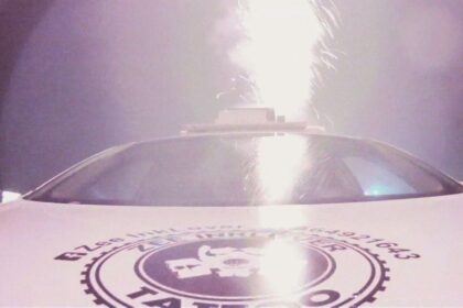Ekstremalu: panevėžietis fejerverkus šaudė nuo važiuojančio automobilio stogo