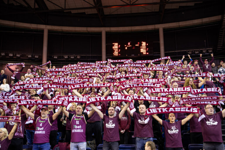 Arena nusidažo vyšnine spalva, į viršų kyla šalikai su panevėžiečiams brangiu vardu…