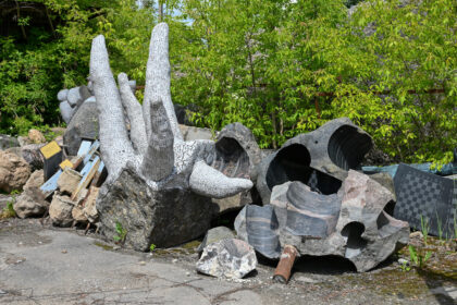 Ant padėklų įmonės „Panevėžio gatvės“ kieme savo valandos laukiančias skulptūras dar šiemet…