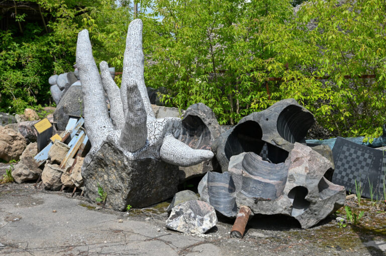 Ant padėklų įmonės „Panevėžio gatvės“ kieme savo valandos laukiančias skulptūras dar šiemet…