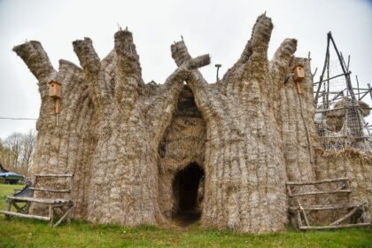 Šiaudinių skulptūrų parke suvešės ąžuolai