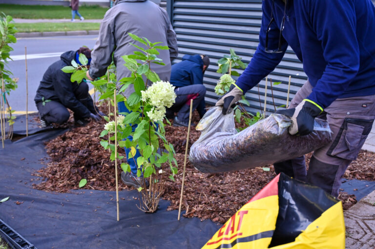 Šiukšlintojus auklės gėlynais