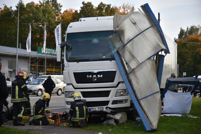 Nelemtoji avarija, kai J. Basanavičiaus gatvėje neužtrauktu rankiniu stabdžiu paliktas vilkikas nuriedėjęs…