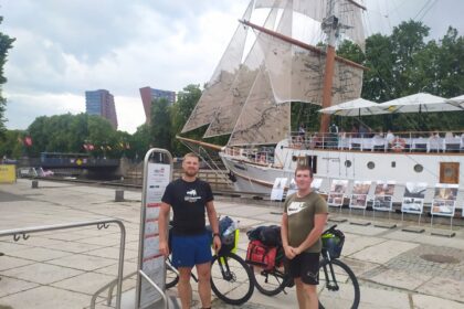 Du bičiuliai panevėžiečiai Audrius Liobikas ir Rolandas Narbutas dviračiais leidosi aplink Lietuvą.…